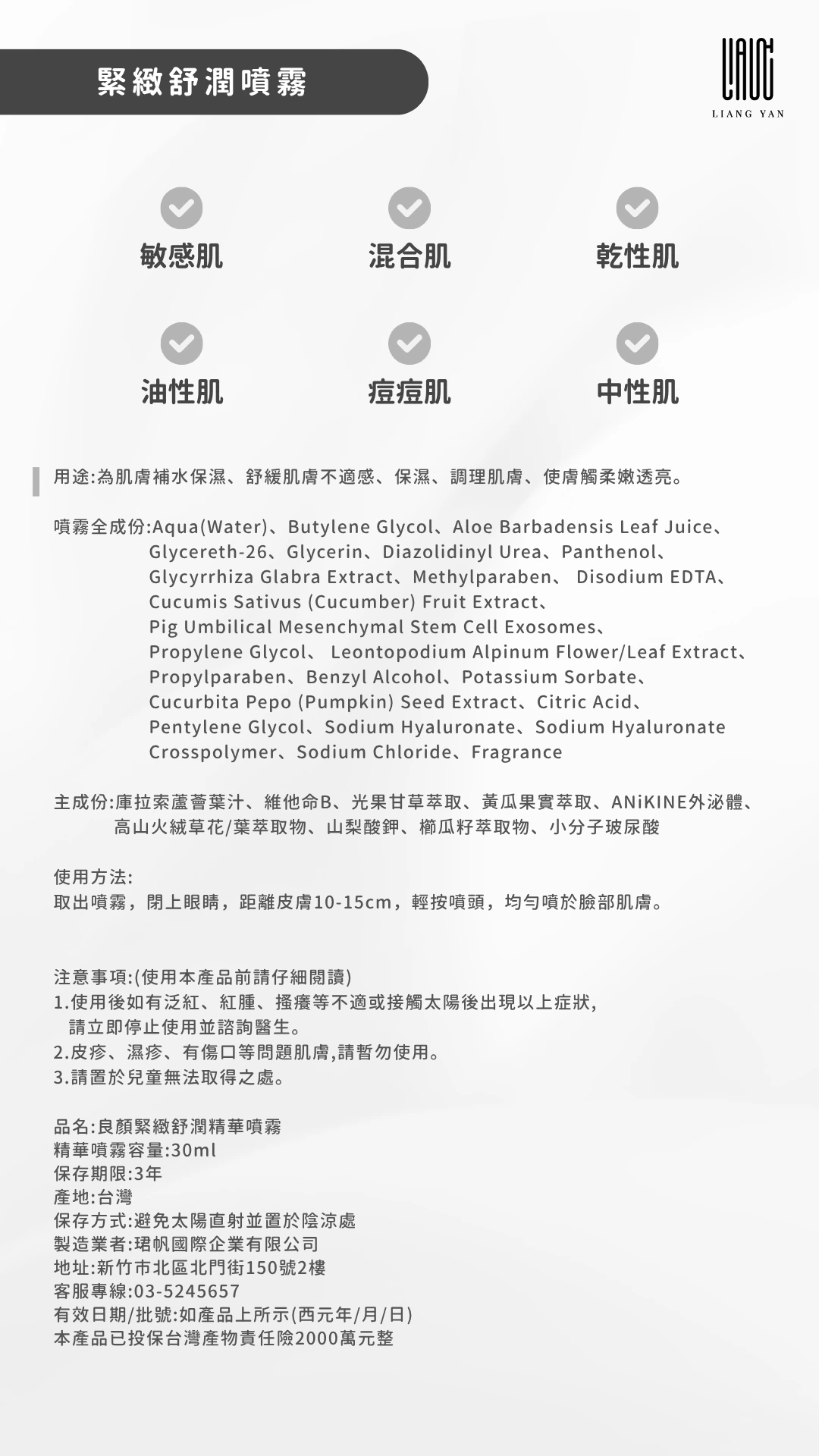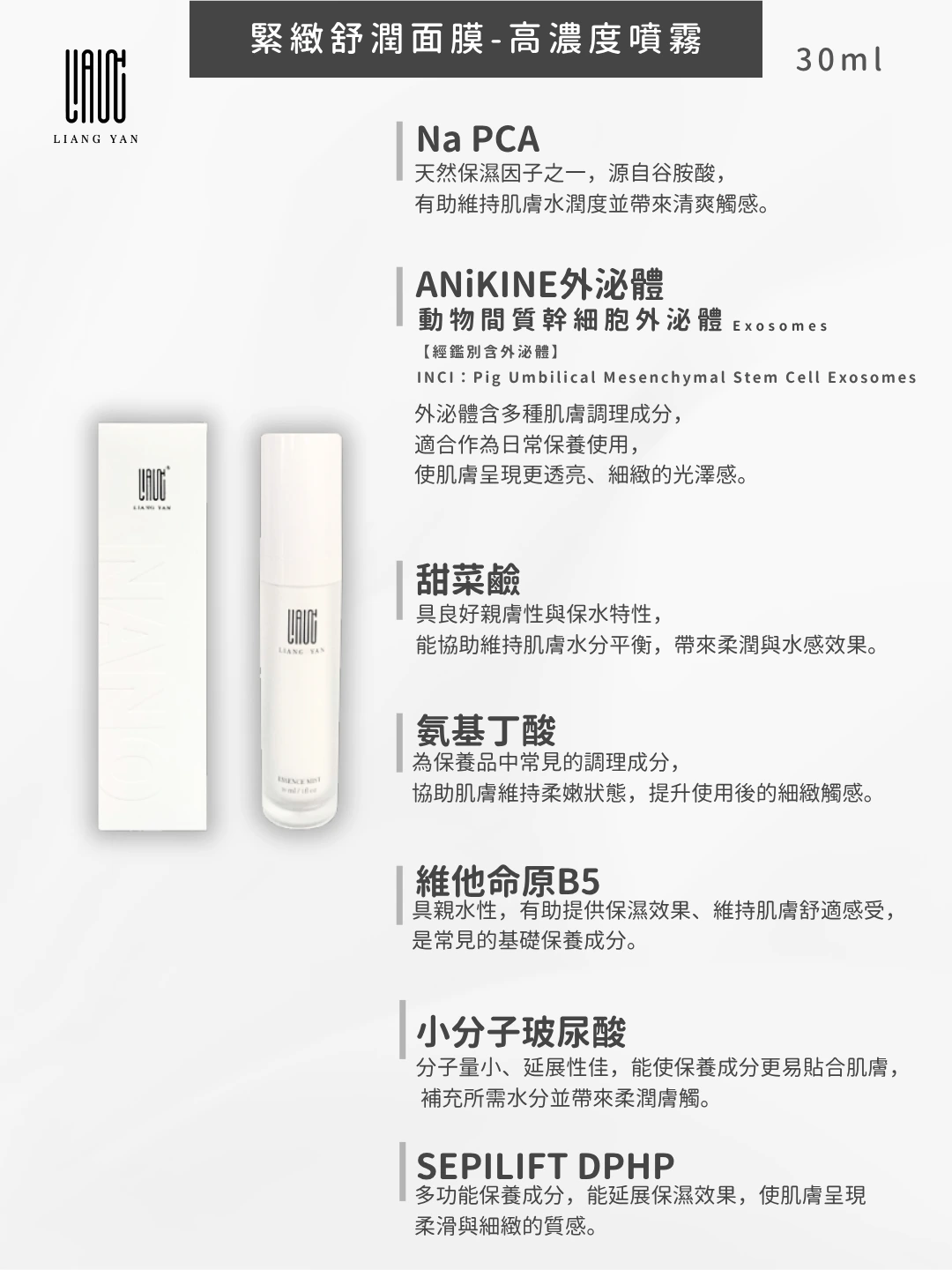 產品敘述:外泌體精華結合細緻噴霧質地,為肌膚帶來溫和滋潤,