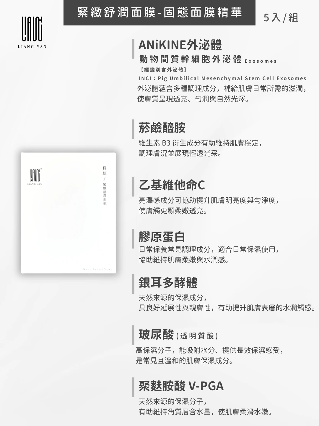 產品敘述:良顏獨家固態黑科技×外泌體精華,
