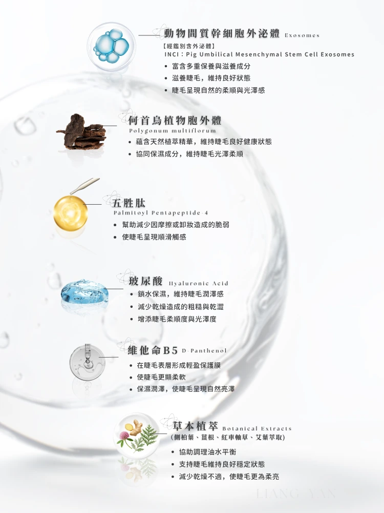 產品特色:外泌體×植物萃取,溫和調理睫毛環境。